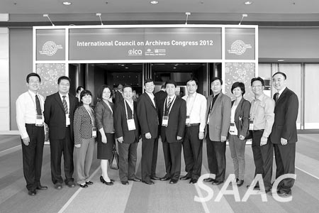 国家档案局局长杨冬权(左六)率国家档案局代表团参加第17届国际档案大会王熹摄