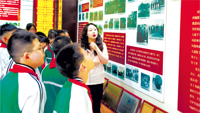 近日,内蒙古自治区根河市档案史志馆联合市委宣传部、团市委等相关单位共同开展青少年纪念英烈红色档案研学宣讲实践活动。学生们在市人民烈士纪念广场向英烈们寄托深切哀思,并在馆内讲解员的引领下,参观档案史志馆爱国主义教育基地展厅,近距离感悟历史印记、聆听英烈事迹、传承红色精神。图为学生们参观展厅。