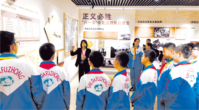 近日,吉林省长春市东北师范大学附属中学的17名学生走进市档案馆,开展了一场以“档案传承文明志愿点亮青春”为主题的社会实践活动。活动中,学生们通过展览观摩、档案技能实操、非遗技术互动等环节,在实践中触摸历史、启迪思想。图为学生们参观“抗战·胜利——纪念中国人民抗日战争暨世界反法西斯战争胜利80周年特别展览”。