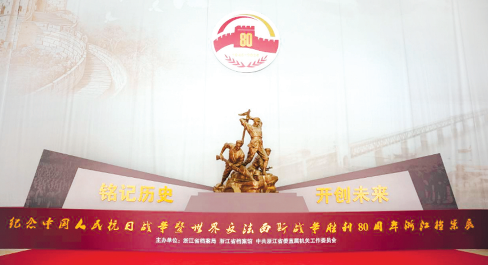 近日,由浙江省档案局、省档案馆、省直机关工委共同举办的“铭记历史开创未来——纪念中国人民抗日战争暨世界反法西斯战争胜利80周年浙江档案展”开展。省委常委、秘书长邱启文宣布展览开幕。