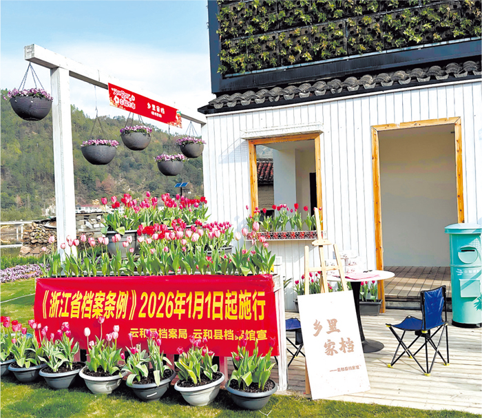 本报讯近日,浙江省云和县档案馆将档案宣传与服务直通车开进石塘镇、紧水滩镇等地,连续开展多场档案下乡宣讲活动,累计发放宣传资料300余份,现场咨询互动超100人次。活动以“乡里家档”为主题,通过法规宣讲、建档指导、记忆守护等多种形式,把档案服务送到村民身边。