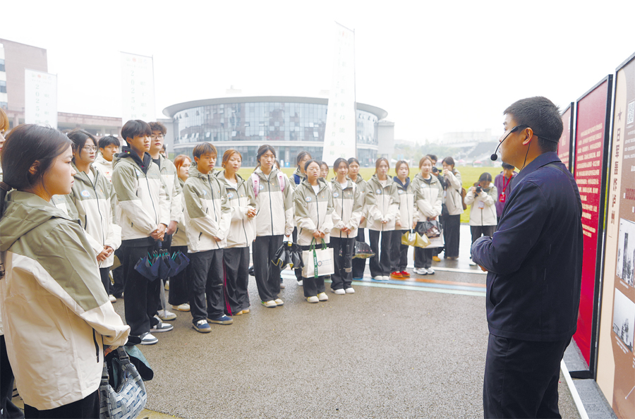 展览精选130余件泸州抗战档案,涵盖历史文件、书信、老照片等,通过展板进行展示。采用“现场讲解+线上聆听”的模式,师生不仅可以通过扫描二维码在线收听专业讲解、抗战歌曲与抗战家书诵读音频,还可由现场讲解员补充讲述历史细节,实现沉浸式学习。开展前,市档案馆与校团委选拔20名学生,组建志愿宣讲团并开展专题培训,内容涵盖泸州抗战史实、讲解技巧与礼仪规范等。集中巡展期间,宣讲团成员分批承担讲解任务,以青年视角诠释历史,实现了“在讲中学、在学中讲”的预期效果。