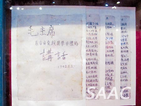 图为 1942年毛泽东在中央党校开学典礼上的讲话记录稿