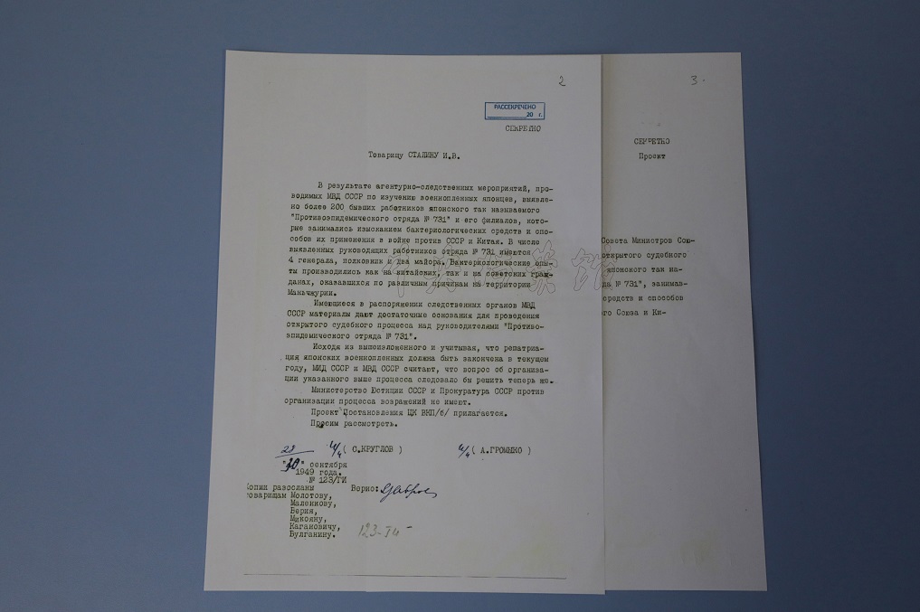 在第十二个南京大屠杀死难者国家公祭日之际,中央档案馆公布一批俄罗斯转交我方的苏联审讯日本731部队的解密档案材料。