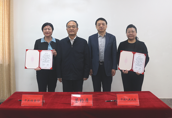 中央档案馆馆长、国家档案局局长王绍忠,中国人民大学校长马怀德、党委副书记郑水泉出席,中央档案馆国家档案局档案资料利用部主任朱敏、中国人民大学档案馆馆长钟兰芳代表双方签署备忘录。